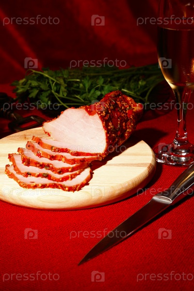 Нарезанная буженина и бокал вина