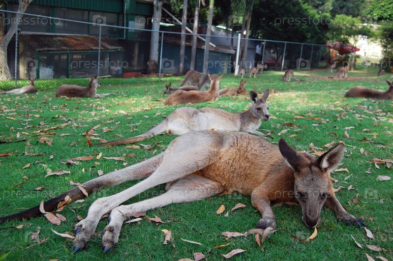 Кенгуру лежат на траве
