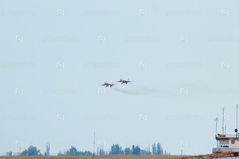 Два российских истребителя МиГ-29 идут на посадку