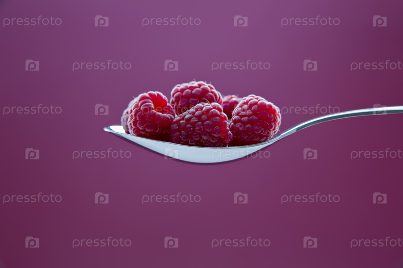 Несколько ягод малины в металлической ложке