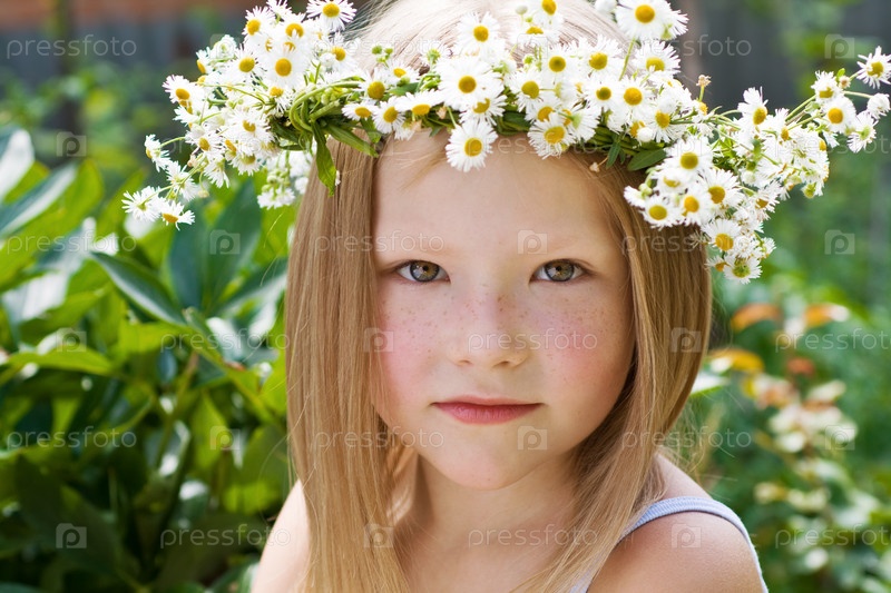 Девочка с венком из ромашек на голове