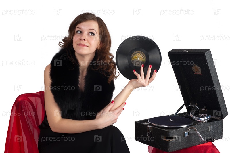 Красивая женщина с граммофоном