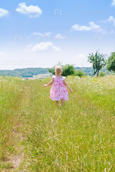 Счастливая маленькая девочка в поле