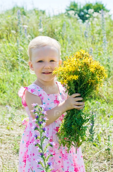 Маленькая девочка с букетом цветов