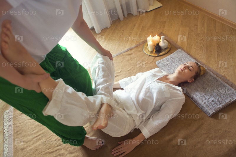 Молодая женщина на тайском массаже
