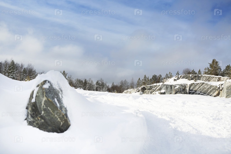 Зимний пейзаж со снегом и елями