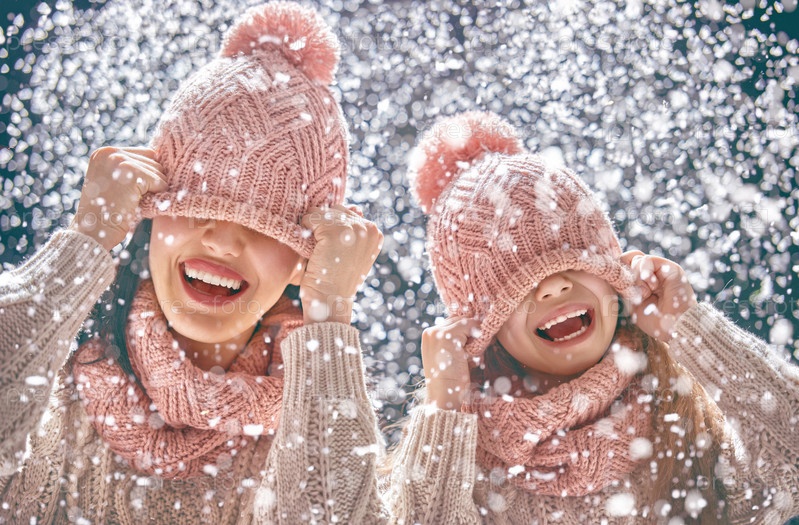 Семья играет на зимней прогулке