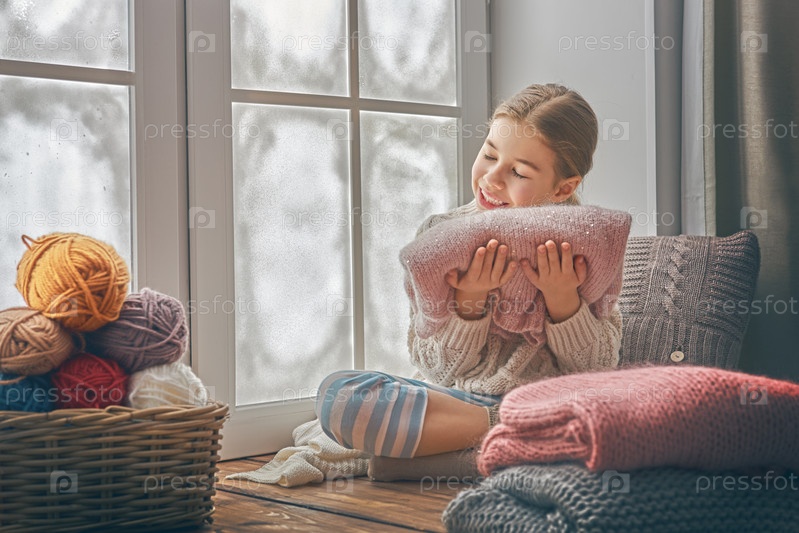 Девочка сидит у зимнего окна