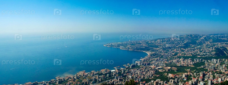 Воздушные панорамный вид на город и залив Джуния, Ливан