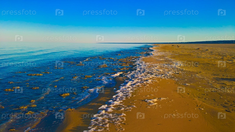 Море пены на берегу Аральского моря, Каракалпакстан, Узбекистан
