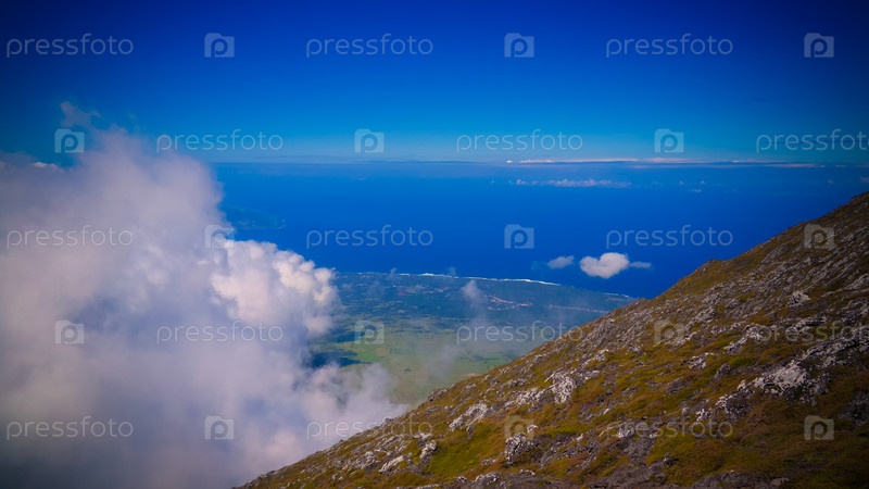 Панорама пейзажа со склона вулкана Пико, Азорские острова, Португалия