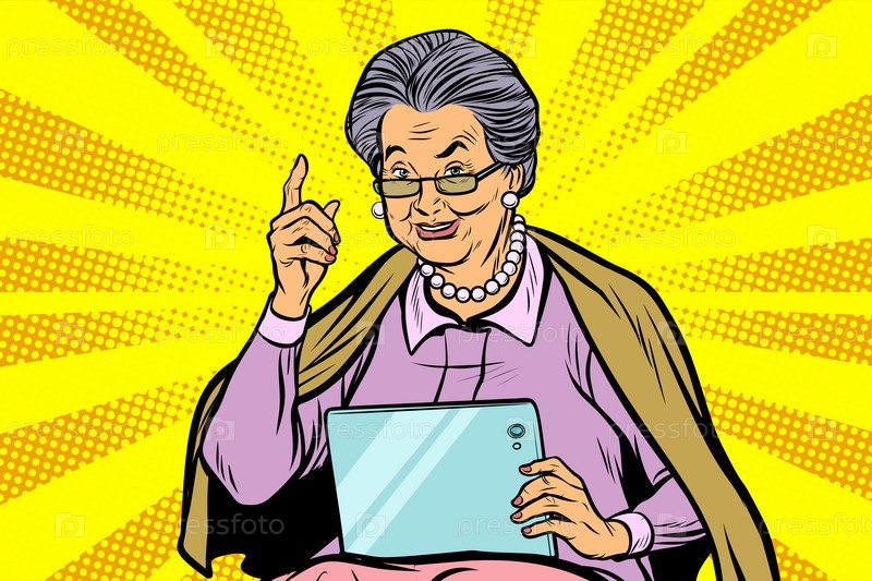 Пожилая женщина с планшетом