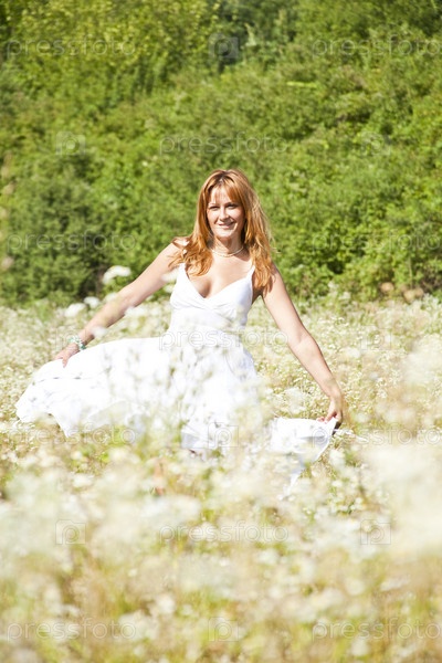 Девушка на зеленом лугу