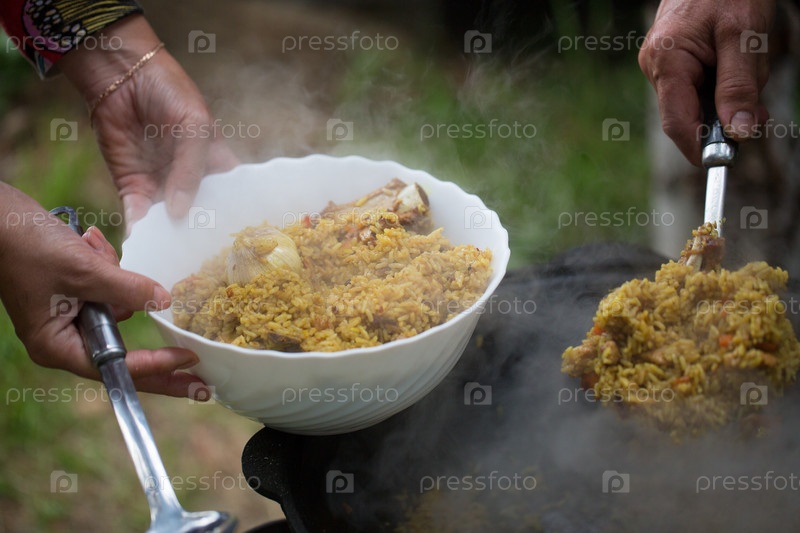 Плов, приготовленный на открытом воздухе