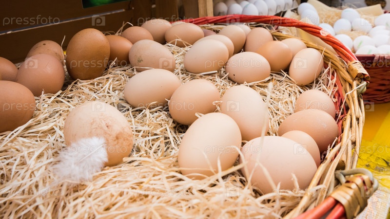 Коричневые куриные яйца на открытом воздухе