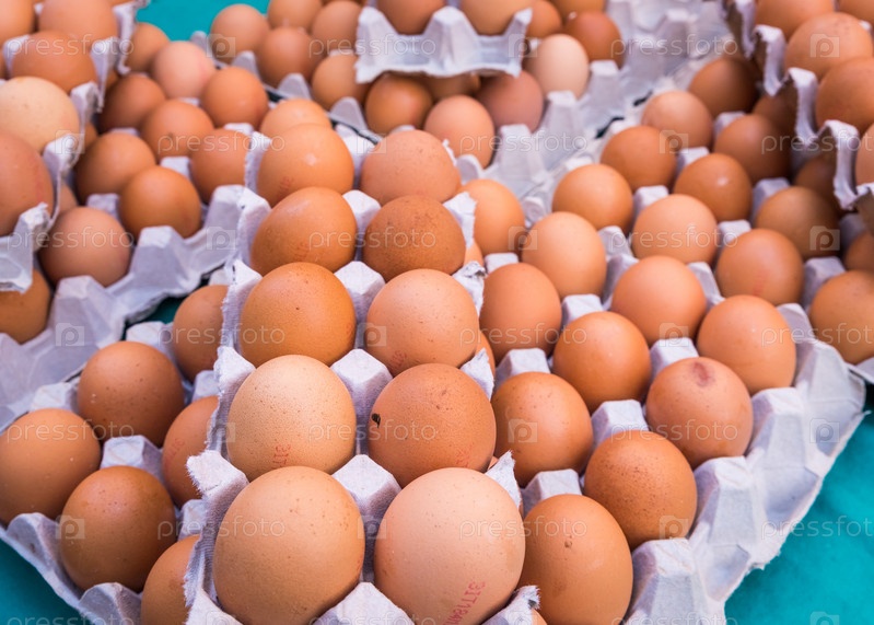 Коричневые яйца куриных в картонных коробках