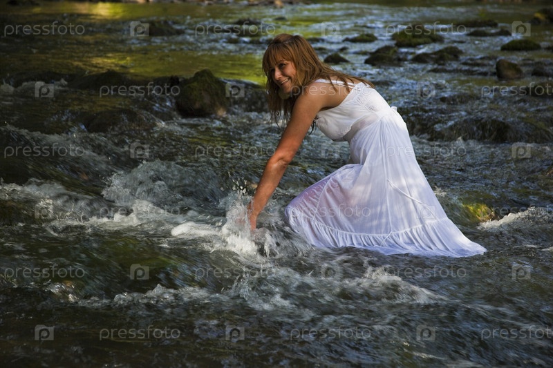 Девушка переходит ручей