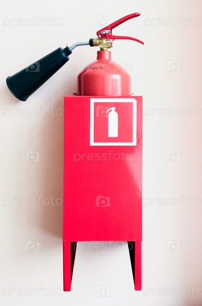 Огнетушитель висит на стене