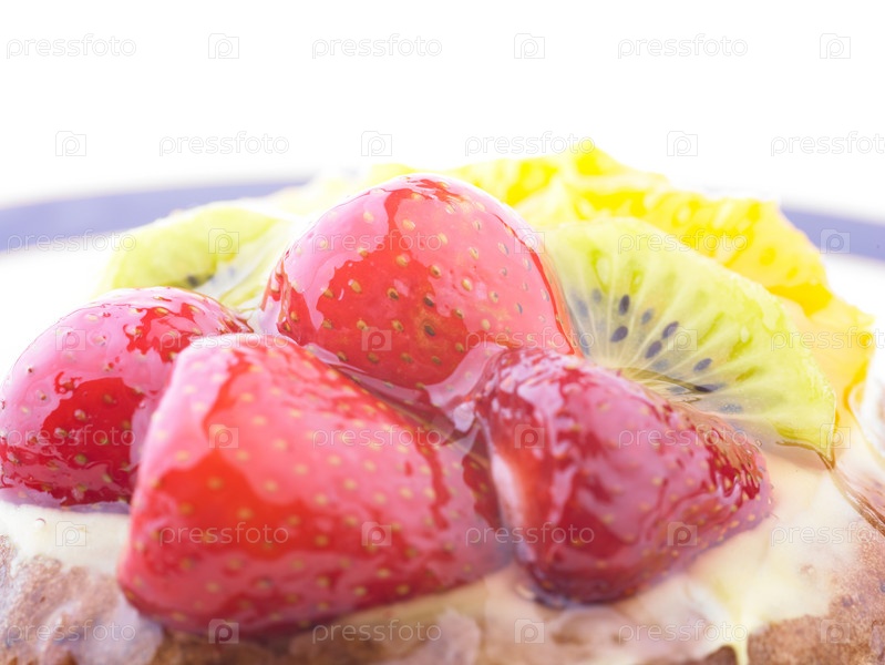Пирожное с желе, клубникой и киви