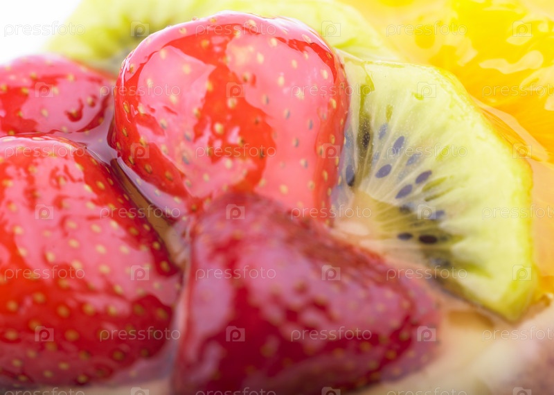 Пирожное с желе, клубникой и киви