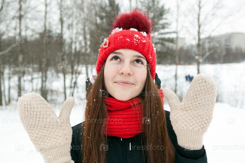 Девушка в зимней одежде и рукавицах
