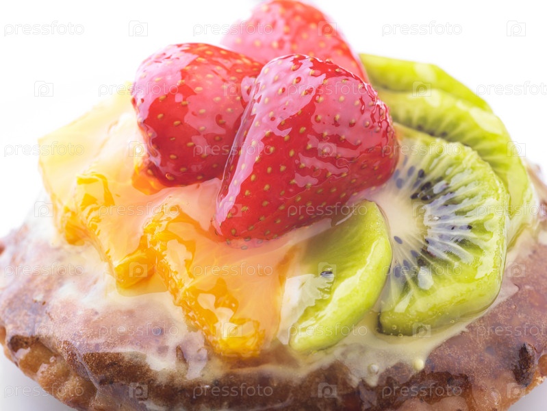 Пирожное с желе, клубникой и киви