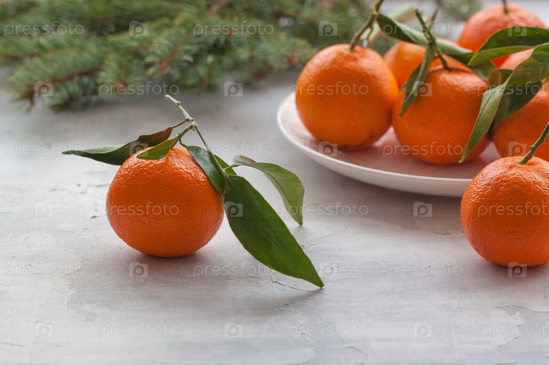 Свежие мандарины с листьями