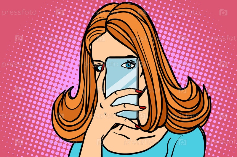 Женщина смотрит через смартфон