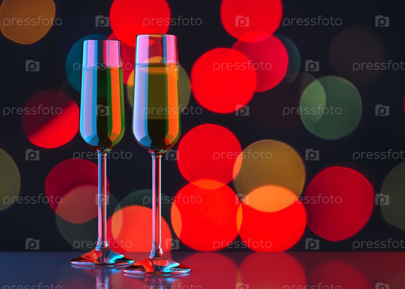 Два бокала шампанского на фоне боке