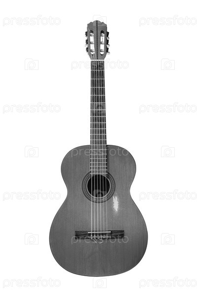 Классическая акустическая гитара на белом фоне
