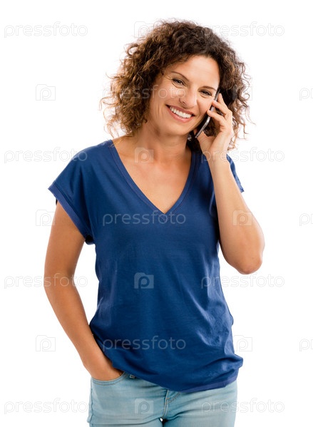 Счастливая женщина разговаривает по телефону