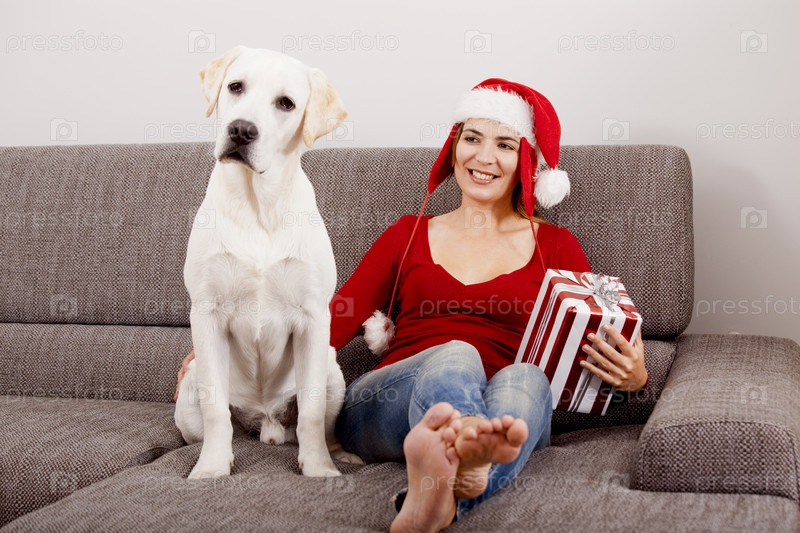 Женщина с собачкой на Рождество