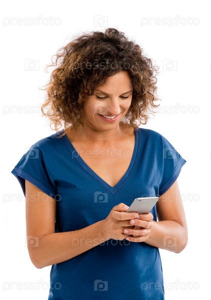 Счастливая женщина пишет текстовые сообщения
