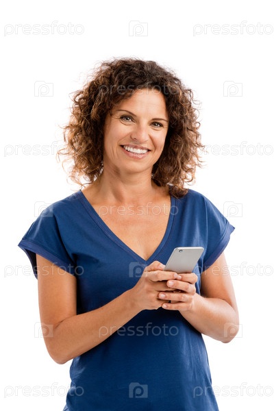 Счастливая женщина пишет текстовые сообщения