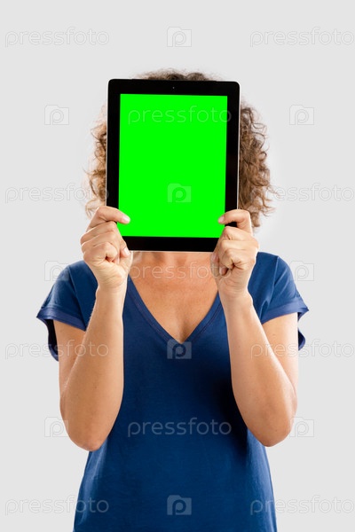 Счастливая женщина с планшетом