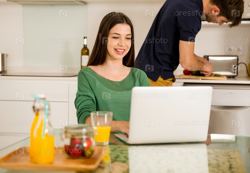 Молодая пара на кухне