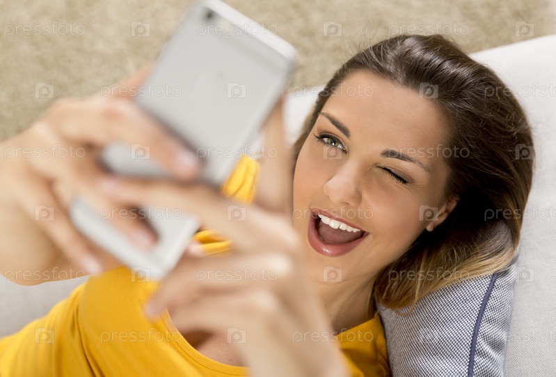 Счастливая женщина делает селфи