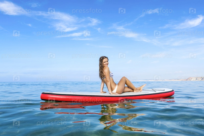 Женщина сидит на доске для серфинга
