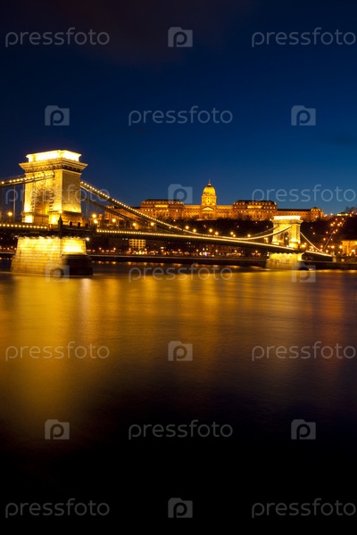 Будапешт в ночное время, мост через Дунай, Венгрия