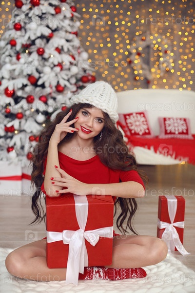 Красивая девушка с рождественским подарком