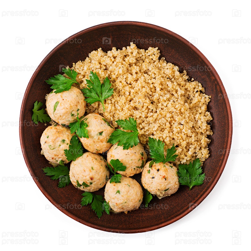 Запеченные фрикадельки из куриного филе с гарниром из лебеды