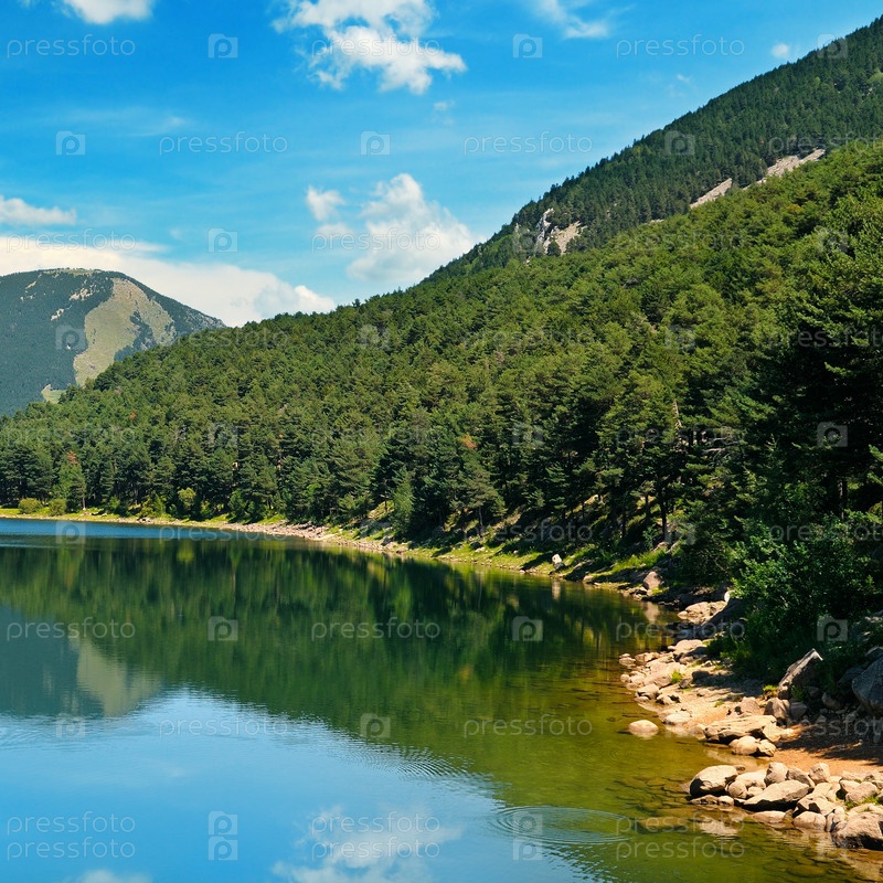 Озеро, горы и голубое небо