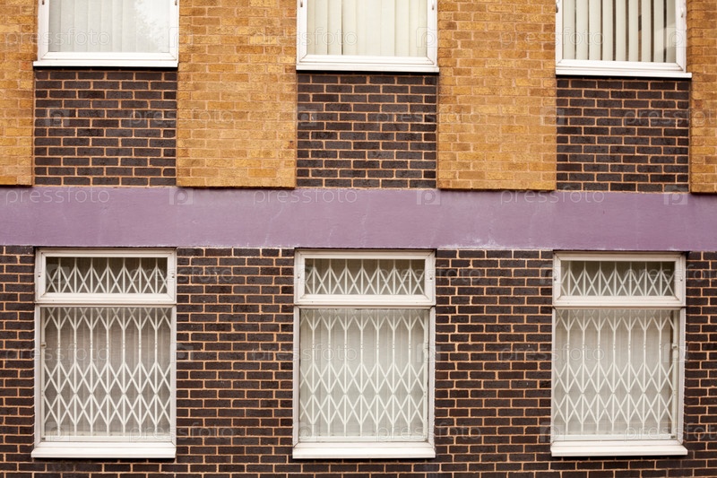 Старая красная кирпичная стена с окнами