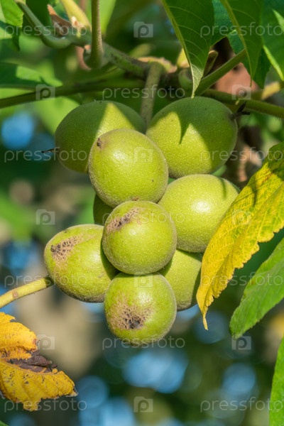 Зеленые орехи на дереве