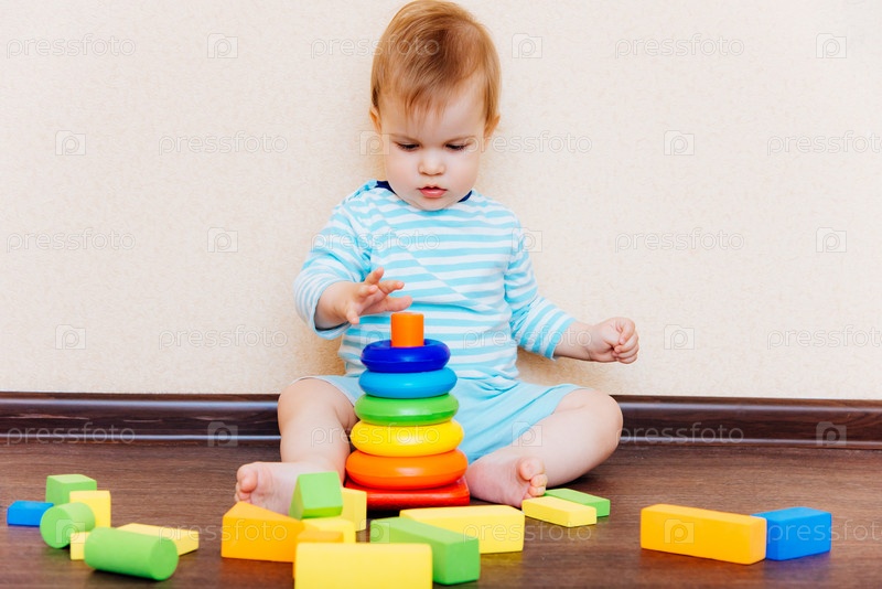 Малыш собирает пирамидку
