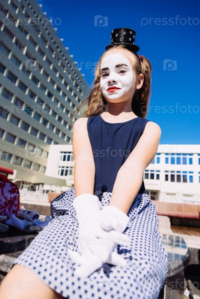 Портрет маленькой девочки мима на улице