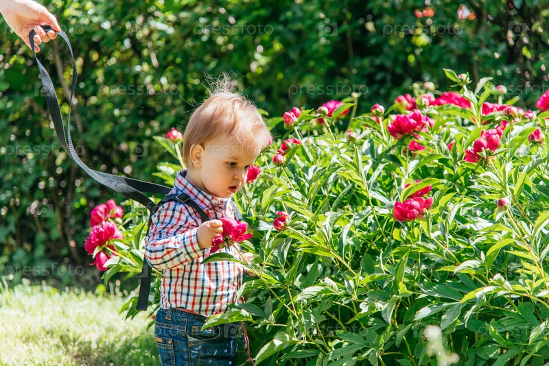 Мама страхует своего ребенка во время прогулки