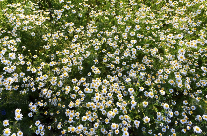 Белые ромашки на зеленом поле