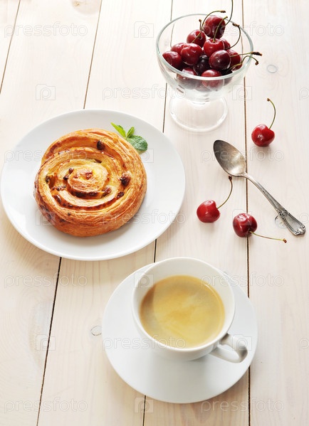 Кекс с корицей, кофе и вишни