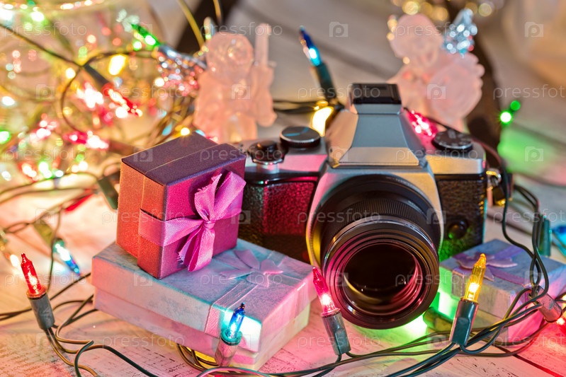 Рождественские подарки с блестящей гирляндой
